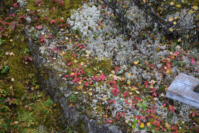 Tired of driving by myself all day, joints hurting, so I pull into this rest stop about 7 pm. Need to stretch my legs, and trail map leads to waterfalls a short distance away – 1/3 mile one-way, and “designed for the physically challenged”. That’s me! There are interpretive signs along the trail telling me these are White and Black Spruce, explaining why they are so small because of the short growing season, and permafrost under the topsoil limiting root growth.
