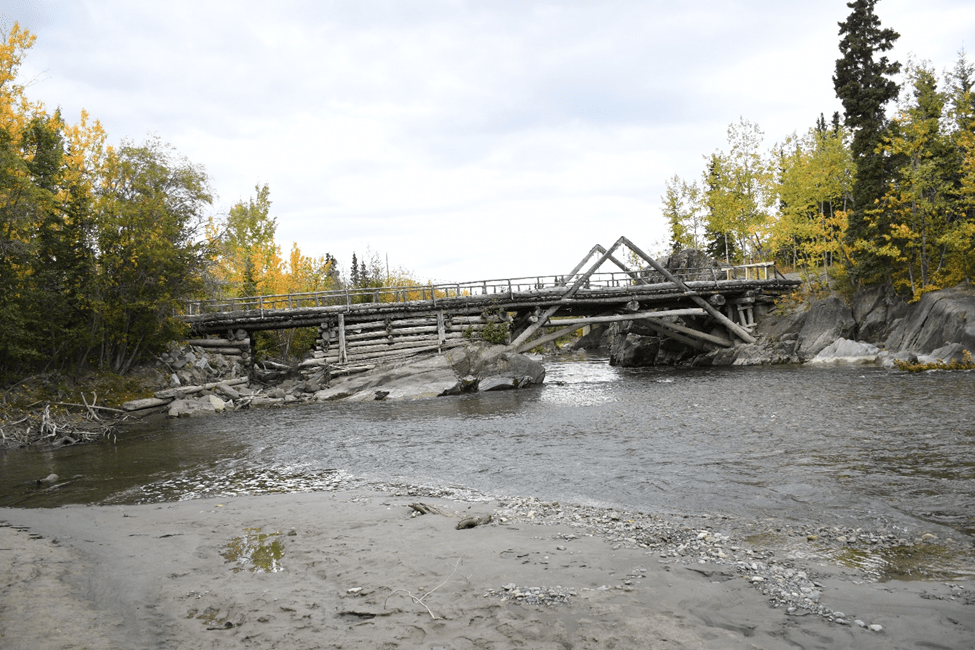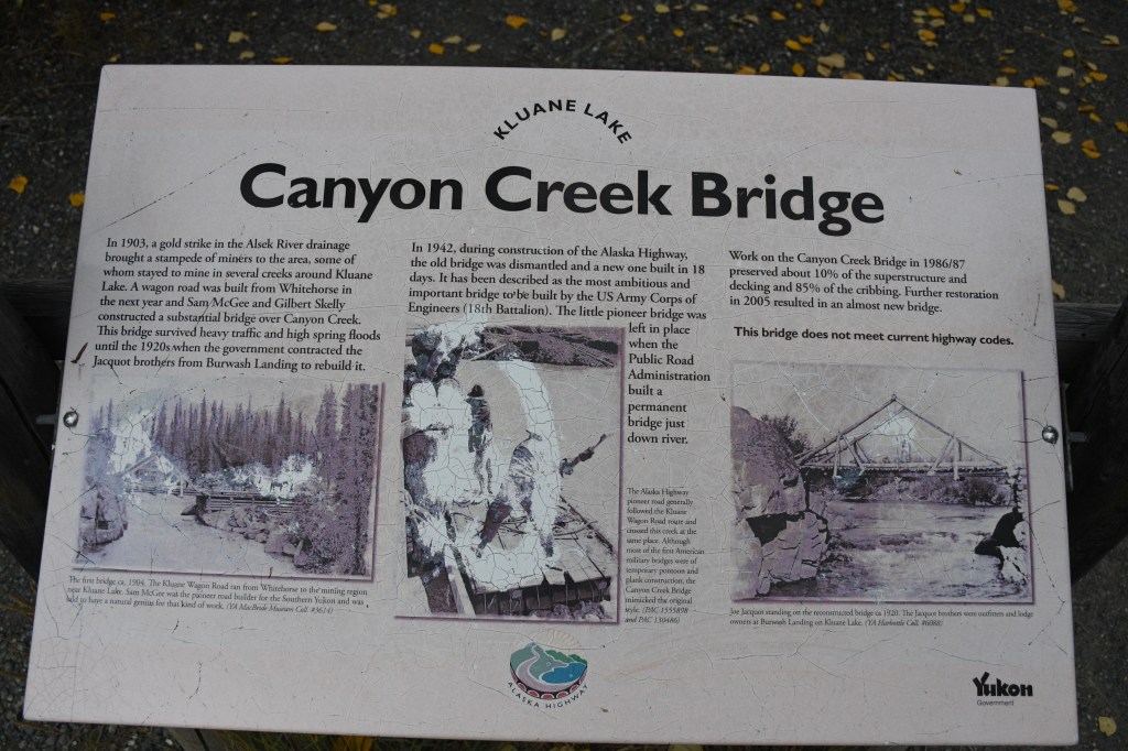 In 1904 this bridge was built for The Kluane Wagon Road which ran from Whitehorse, Yukon to the mining region near Kluane Lake. It is no longer safe and is closed to vehicle and pedestrian traffic.