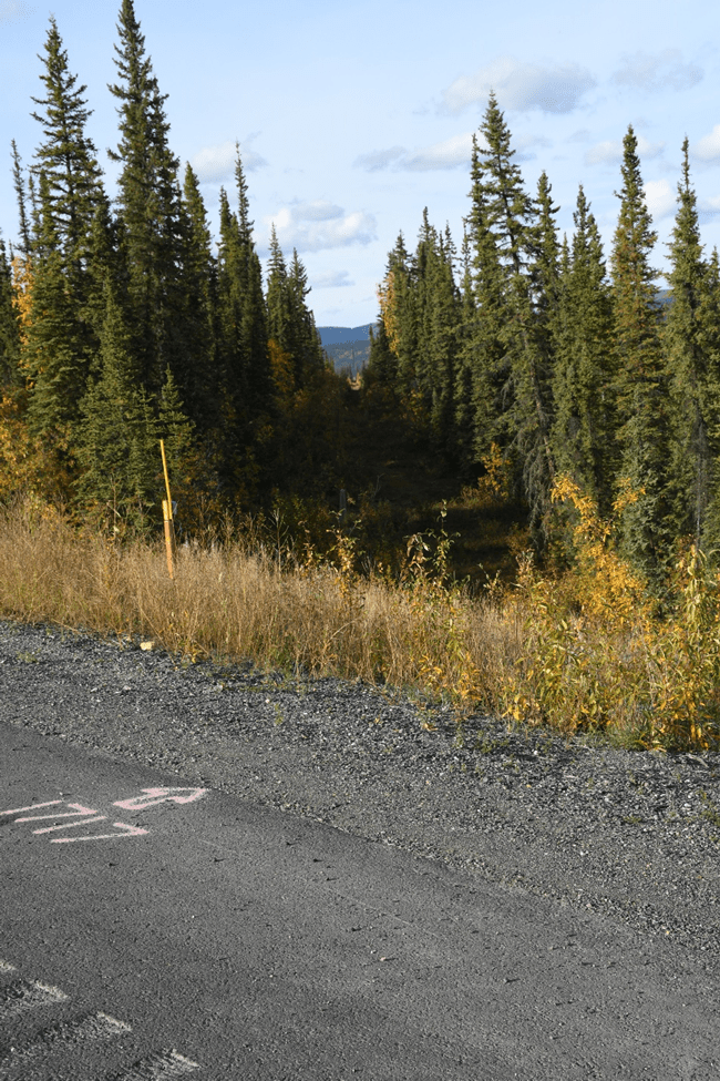 At the actual border, there is a swath of trees cut out on the international line with specific U.S./Canada markers. This is the 141st meridian of longitude, which marks the boundary between Yukon and Alaska. It extends from the Arctic Coast to Mount Saint Elias, 1,538 miles/2,475 kilometers. This border between Canada and the U.S. is the longest undefended boundary in the world.