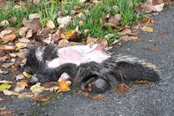 Back on the pavement, I find another car has arrived, so I know I’m not alone. I search and find three gentlemen at another place on the stream and ask if they are local people, as their license plates indicate. They claim they are tourists from Virginia, it’s a rental car, and no, they don’t know the local wildlife. They didn’t see the partially devoured porcupine. We go back to the parking lot to show them, and they remark: “Cool!” One guy bends down and says: “If I had gloves, I could feel it and see if it’s still warm.” I offered him some rubber gloves from my first aid kit, but he declines – such false bravado.